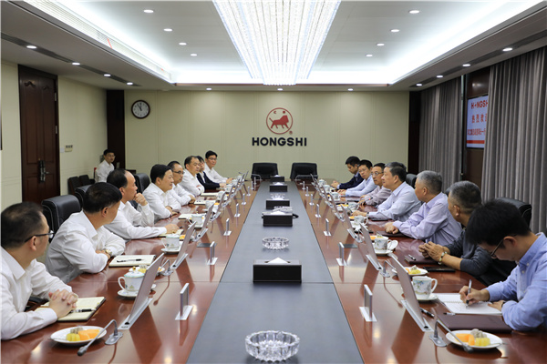 在項目實地檢驗后,戚董一行來集團參觀交流,充分肯定紅獅集團在發展戰略、精細化管理、智能制造等方面工作。雙方就如何在各自行業精耕主業、做強做大、走到前列等進行交流學習,一致認為戰略選擇在企業發展中起決定性作用,濱江與紅獅的使命都是以客戶為中心,品牌品質至上的理念深入企業每個生產建設經營環節,讓用戶滿意。會議還就濱江紅獅|上品項目下步建設、裝修、銷售計劃及未來更深層次的合作展開交流。