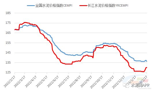 上周五,長江流域水泥價格指數(YRCEMPI)報收130.16點,環(huán)比上周上漲2.94%。