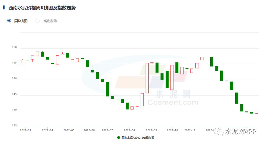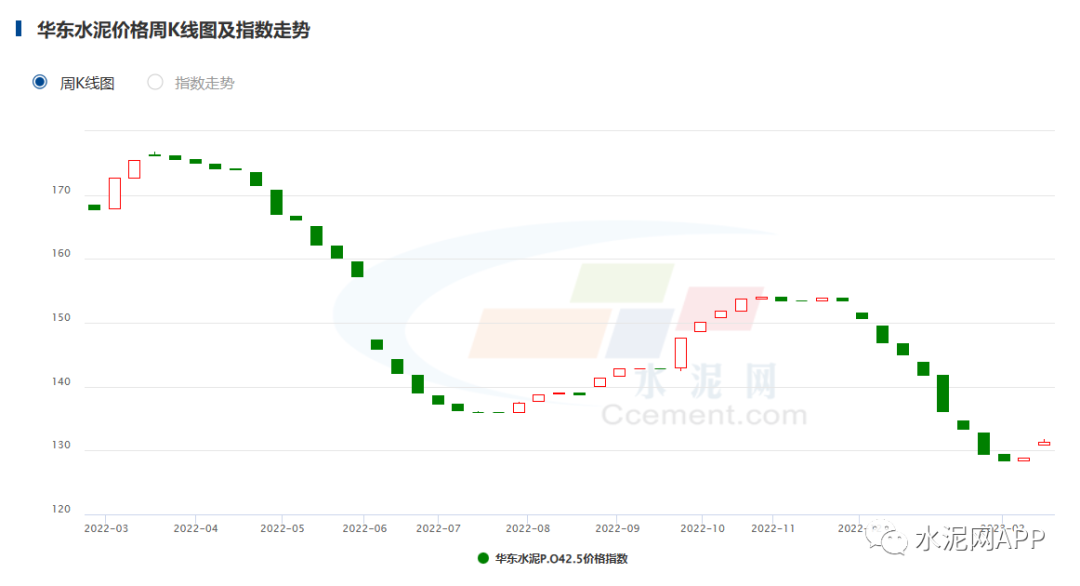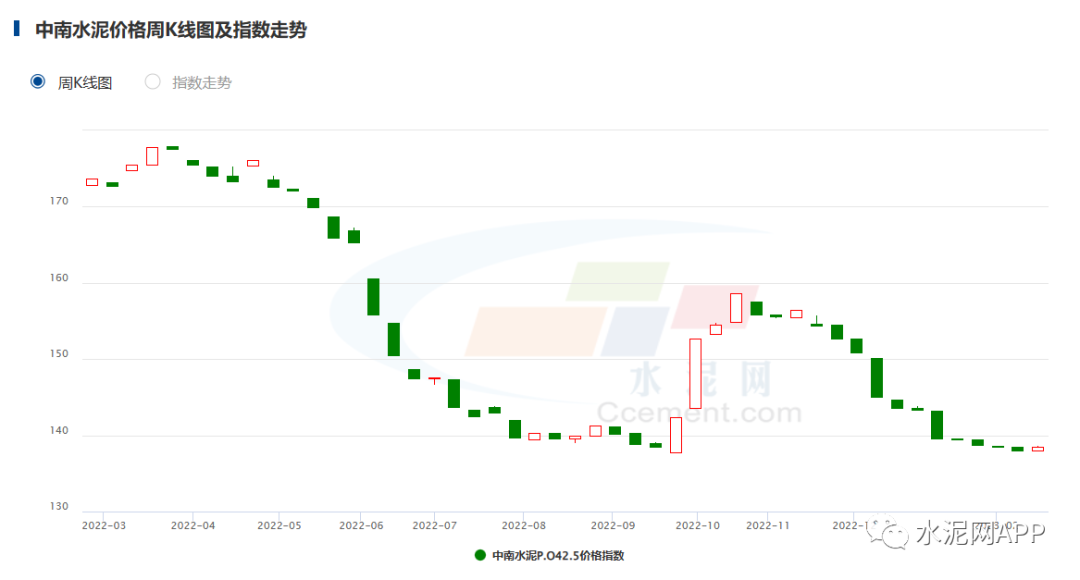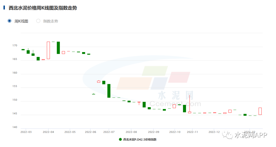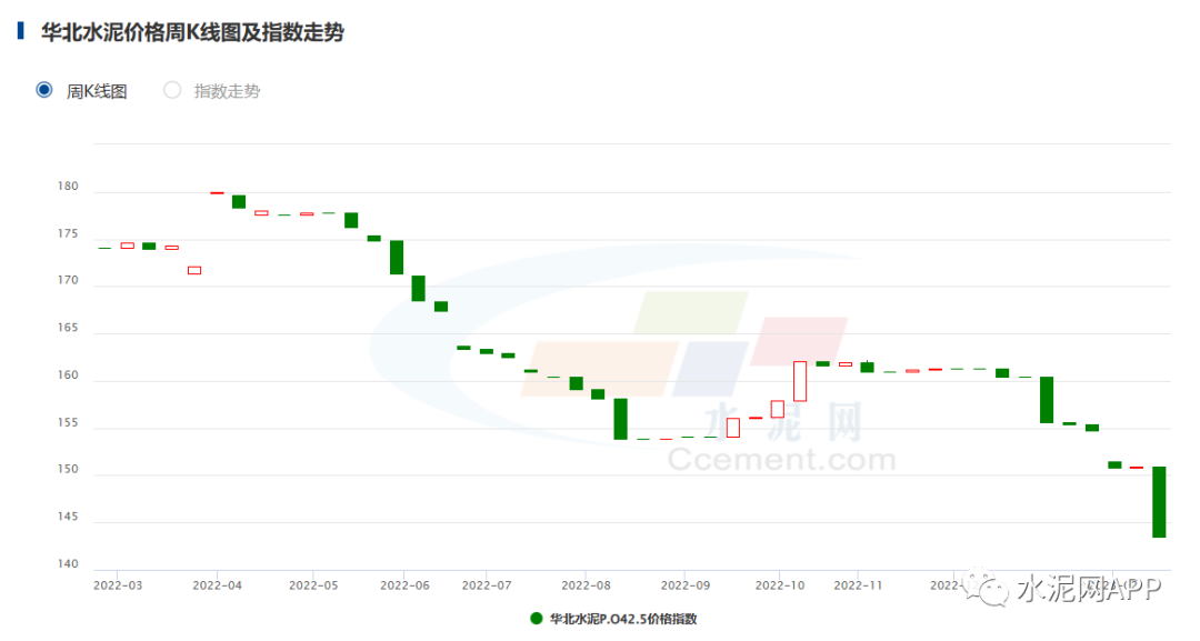 華北地區(qū)受冬儲影響,水泥價格下跌4.95%;