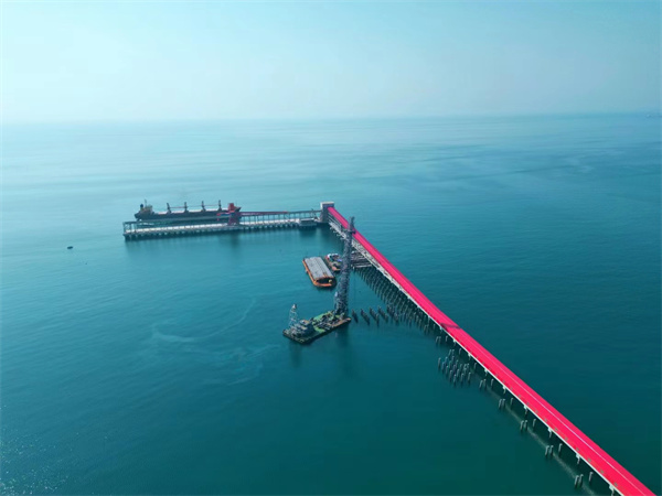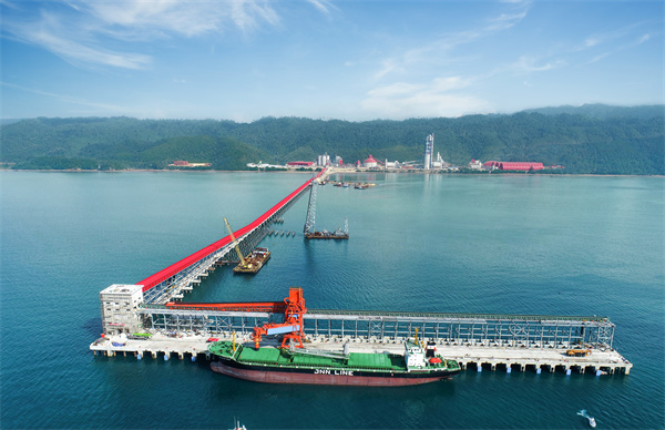 10月28日上午11時18分,印尼東加紅獅碼頭機器轟鳴,隨著裝船機伸縮罩緩緩落下,熟料順利入倉裝船,標志著東加紅獅海港碼頭正式投入運營,踏上海運銷售新征程。
