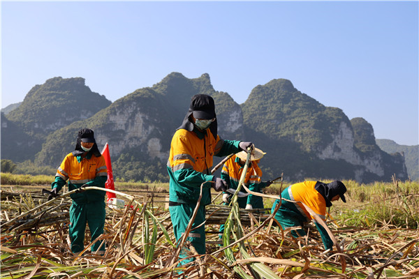 為解決海外員工實際問題,讓員工全身心投入工作,崇左紅獅工會在了解到雙職工家庭的特殊情況,真實掌握困難和需求后,于12月19日利用周末時間,經營班子帶隊,帶領大學生、后勤線共計37名員工,精神飽滿,整齊有序地前往大新縣寶圩鄉景陽村,開展“助海外員工家屬收甘蔗”活動。