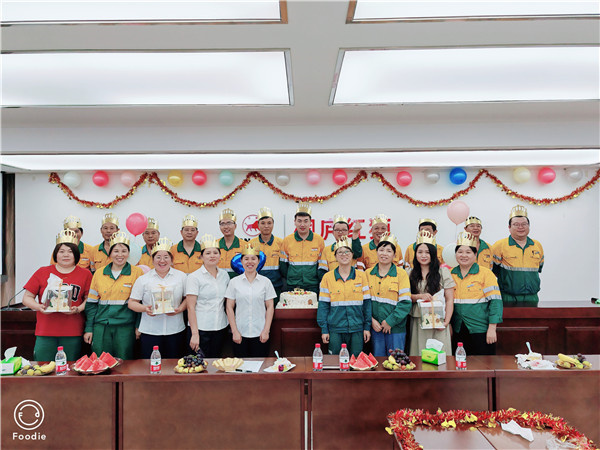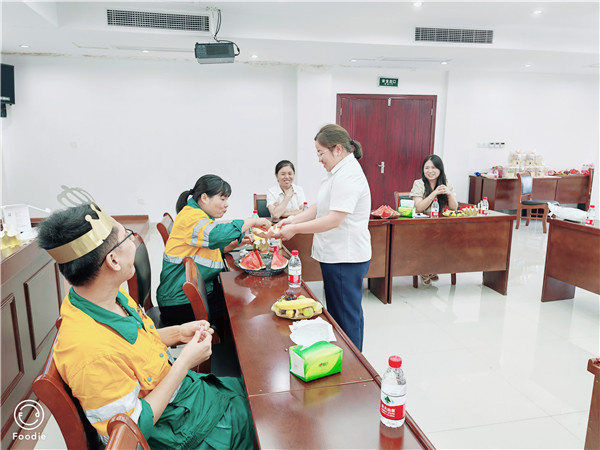 活動現(xiàn)場擺滿了西瓜、葡萄、棗子等水果,伴隨著歡快的生日歌伴奏,到場的21名壽星同唱生日歌,同品生日蛋糕,分享生活中的趣事,工作中的經(jīng)驗,祝福自己的同時,也給同是壽星的同事們送上了暖心的祝福。